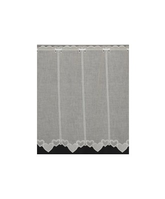 Rideau brise bise blanc avec double pointe et une edelweiss brodée, mais qui reste discrète. Disponible en largeur de 45 ou 60cm pour une hauteur de 60cm et 90cm. Merci de nous faire part de vos demandes par mail ou téléphone, le stock disponible étant variable et l'approvisionnement pas constant.
