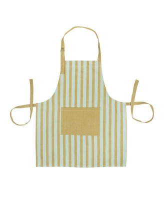 Tablier de cuisine avec rayures dans les teintes vives abricot. Ce tablier est 100% coton organic. Il a une poche sur le devant.